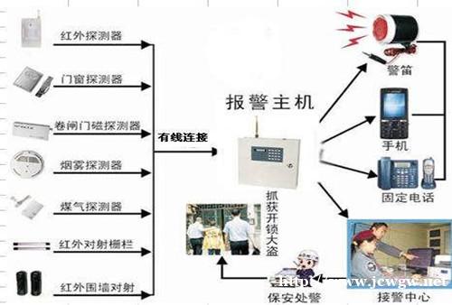防盗报警系统是指当非法侵入防范区时,引起报警的装置,它是用来发出出现危险情况信号的。防盗报警系统就是用探测器对建筑内外重要地点和区域进行布防。它可以及时探测非法入侵,并且在探测到有非法人侵时,及时向有关人员示警。譬如门磁开关、玻璃破碎报警器等可有效探测外来的人侵,红外探测器可感知人员在楼内的活动等。一旦发生人侵行为,能及时记录入侵的时间、地点,同时通过报警设备发出报警信号。
